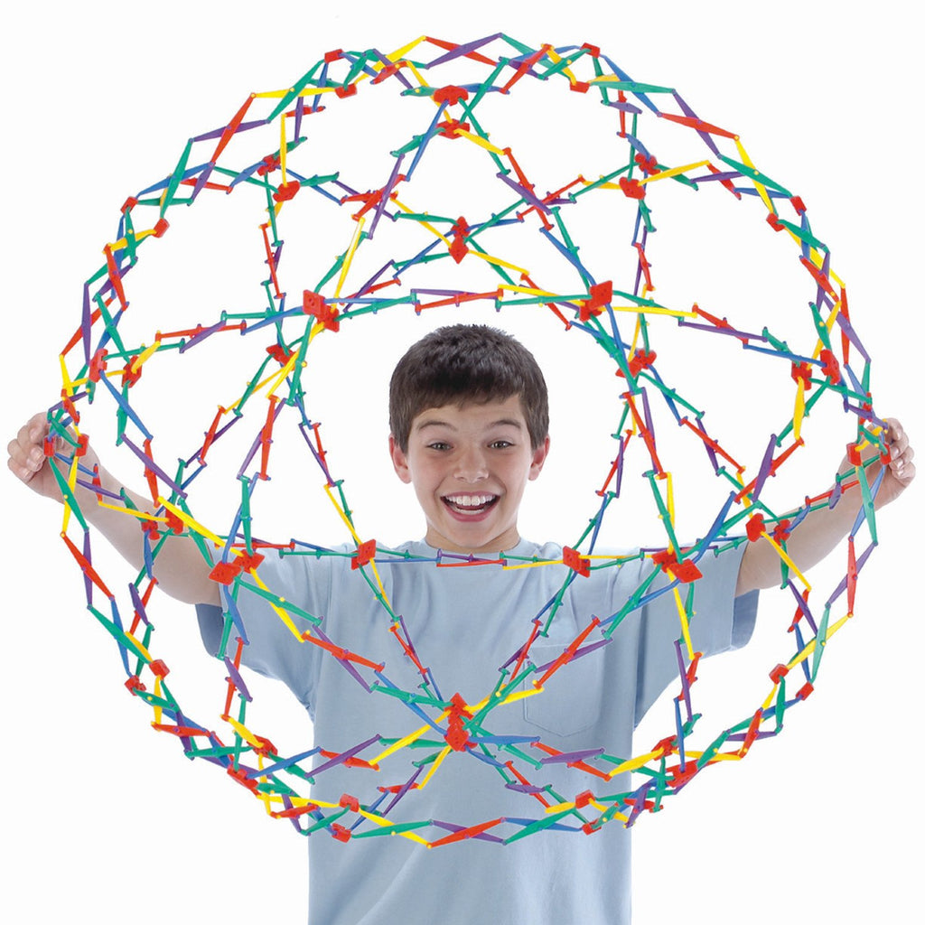 Combines mathematics, geometry and aesthetics into a magical motion of surprising simplicity, beauty and fun. Its system of polymer links expand and contract almost effortlessly, changing in volume 30 times. A sturdy toy, an object of art, a tool for teaching mathematics and science - the Hoberman Sphere's universal appeal and versatility have led its owners to discover uses even its inventor never dreamed of. Children love to wear it on their heads, or climb inside. Grown-ups have proved themselves no less inventive: jugglers juggle with them. Drill teams march with them. Magicians make magic with them. Teachers teach geometry with them. Motivational speakers use them as metaphors for unity, teamwork and expanding potential. Ages 4 and up. Expands from 9.5" to 30".