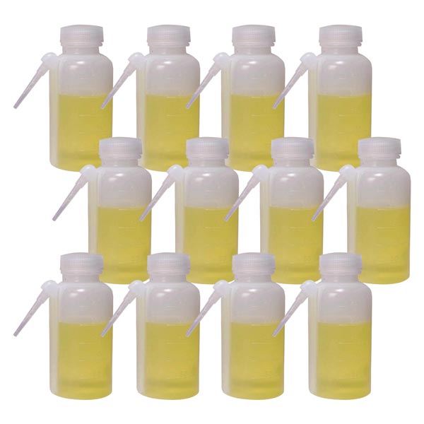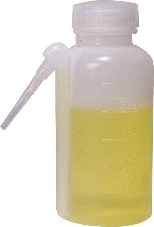 Graduated Interval: 50ml These bottles are made of translucent and unbreakable low density polyethylene. The distinguishing feature that these bottles contain is the built-in delivery tube making it a one-piece wash bottle. These bottles are graduated on the outer surface to reflect an approximate volume of solution filled or dispensed.